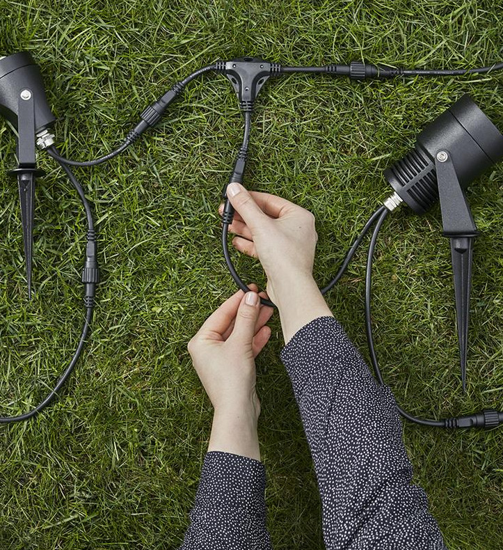 Poate fi folosit numai cu lampa, spotul, dimmerul, senzorul, transformatorul si extensia pentru cablu din gama Garden.
