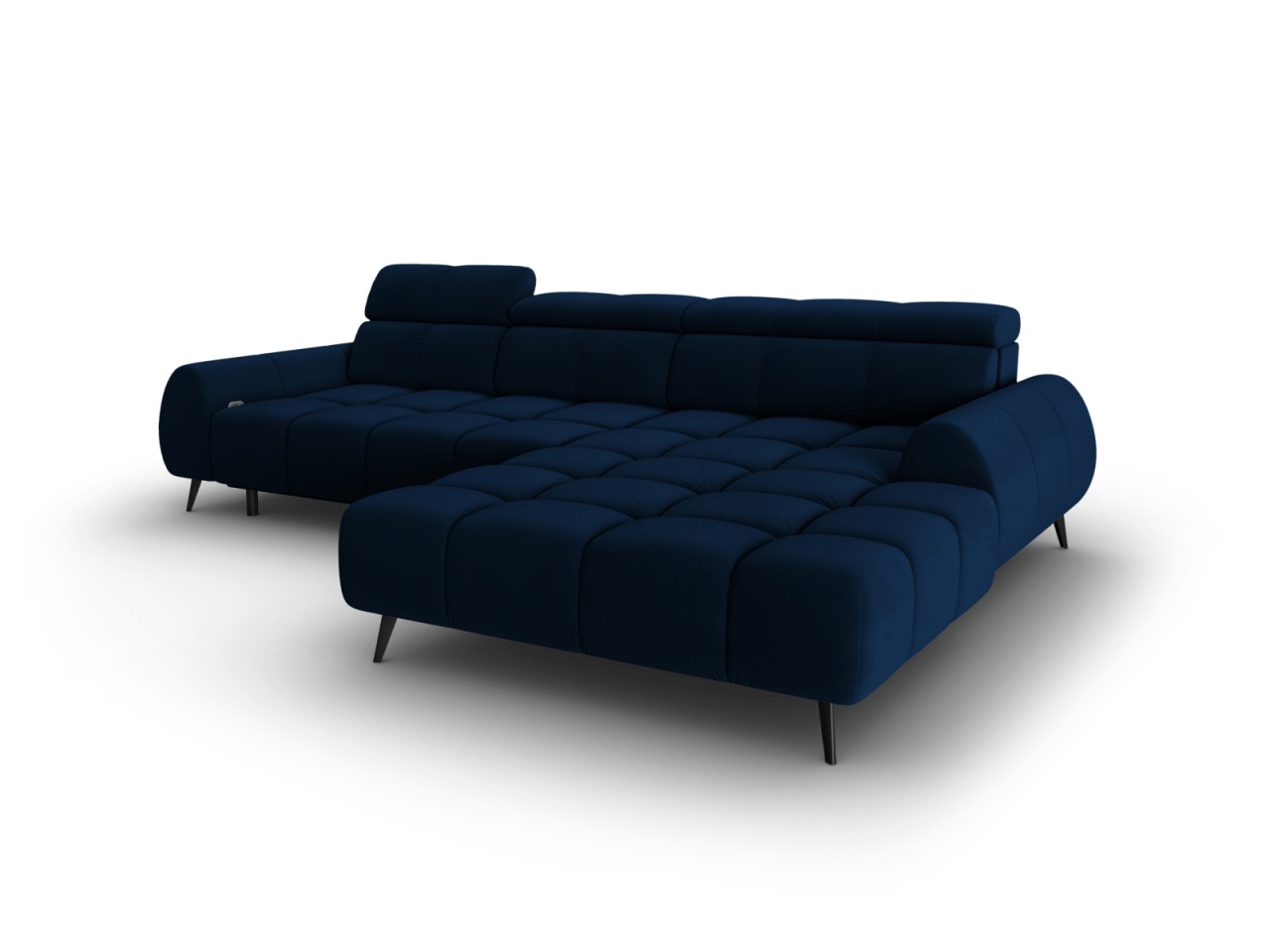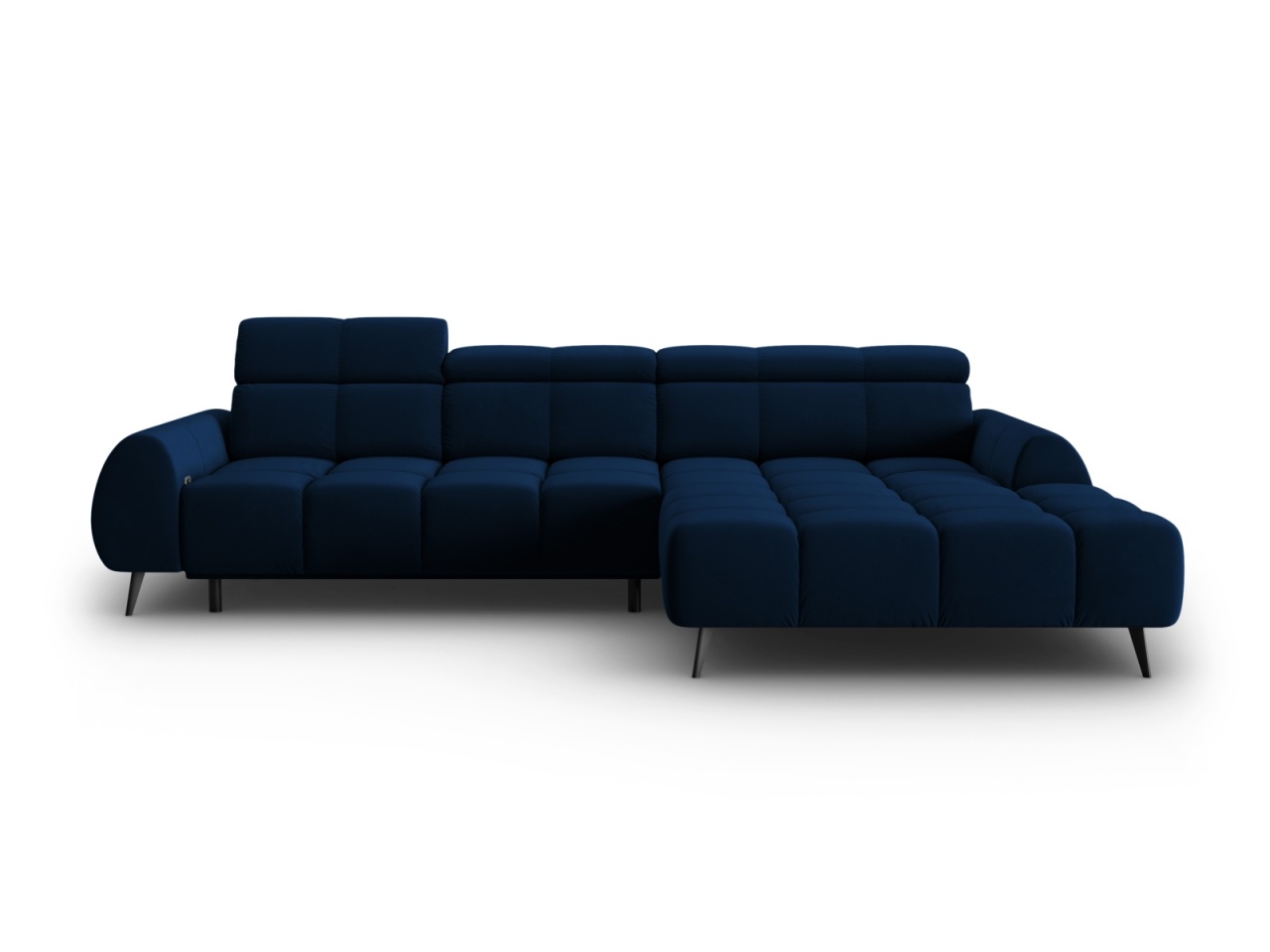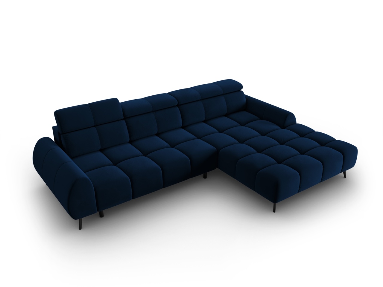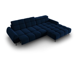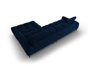 Canapea cu colt extensibila albastru royal/neagra din catifea pentru 5 persoane Alyse Right Micadoni