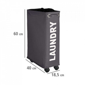 Cosul de rufe ingust, care economiseste spatiu, este fabricat din poliester de inalta calitate si poate fi mutat cu usurinta datorita celor patru roti. In acest produs rufele murdare si inestetice pot fi ascunse cu succes. Prin urmare, colturile din casa ta pot acum deveni spatii practice de depozitare.