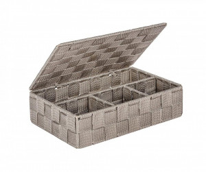 Adria Klein asigura ordinea in intreaga gospodarie. Ajutorul practic din plasa de plastic de inalta calitate ofera suficient spatiu in patru compartimente pentru bretele, perii, cosmetice sau alte accesorii de baie. Impartirea practica a cutiei intr-un compartiment alungit si trei patrate face din frumoasa cutie un adevarat must-have in fiecare baie si toaleta pentru oaspeti. Culoarea la moda pune accente elegante si devine o adevarata atractie a ochilor in fiecare camera.