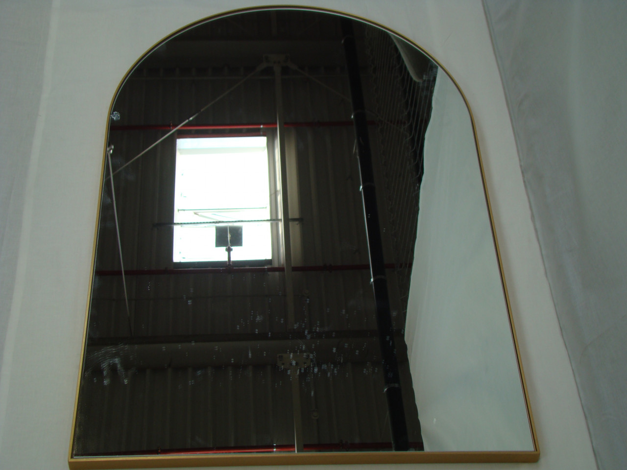 O oglinda de perete arcuita din alama periat.