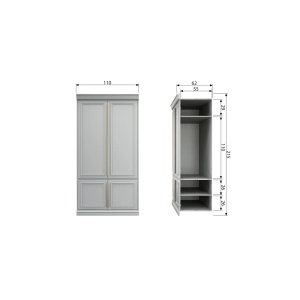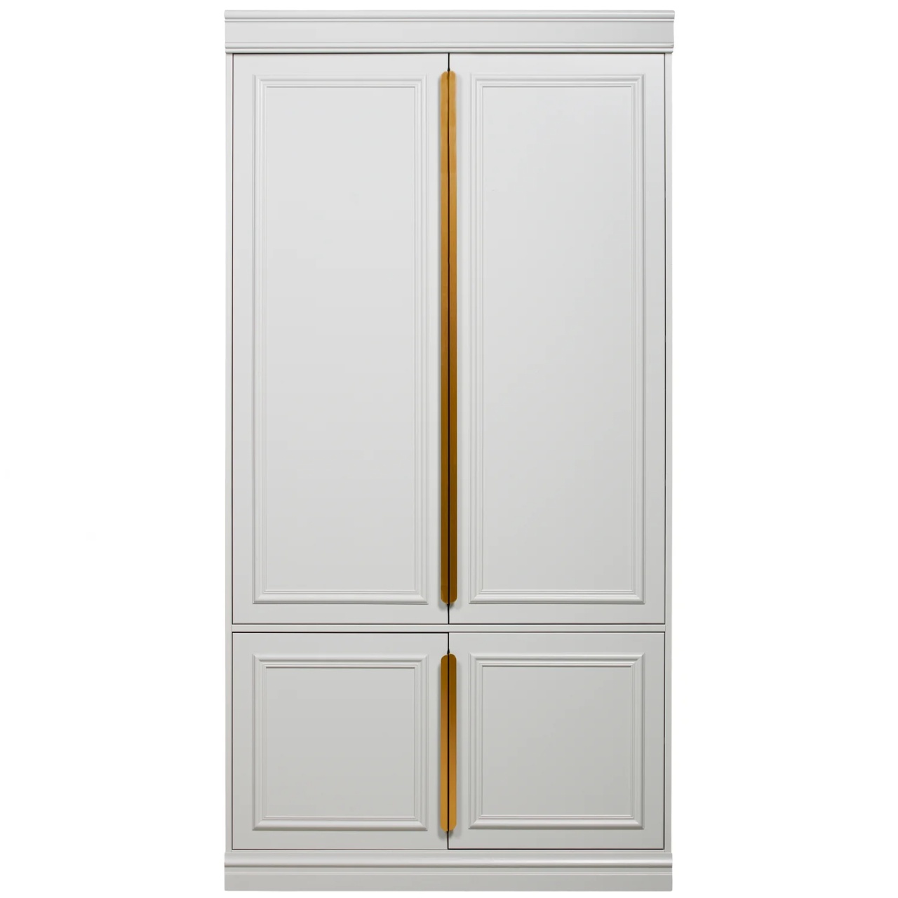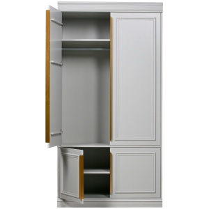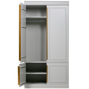 Un dulap frumos, robust, cu elemente clasice, acesta este dulapul Organize din colectia brandului olandez de decoratiuni interioare Woood. Culoarea eleganta gri bruma, in combinatie cu manerele din alama antichizata, confera o nota moderna dulapului predominant clasic.