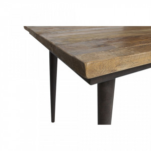 O masa robusta, caracteristica. Aceasta este aceasta masa Guild din noua colectie Woood. Guild este realizata din lemn de ulm recuperat, cu un finisaj mat pe baza de apa, pastrand aspectul caracteristic al donjonului. Acest lucru face ca fiecare blat de masa sa fie unic! Masa are o baza din metal negru rugina. Perfect potrivit ca atragere a ochilor in zona de luat masa.