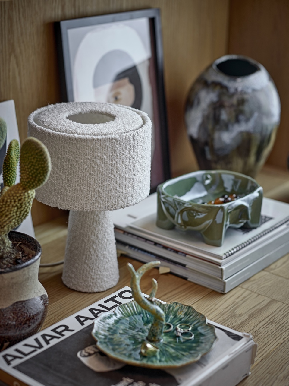 Farfuria Litton de la Bloomingville este realizata din ceramica cu glazura reactiva in nuante de verde si auriu. Natura glazurii poate provoca variatii de culoare, facand fiecare piesa unica. Perfecta pentru bijuterii, chei sau ca element decorativ pe o comoda.