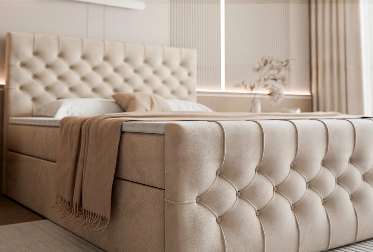 Pat bej din catifea 200x200 cm Kosta Boxspring FURPOL