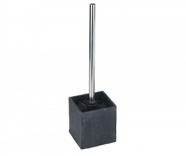 Un ansamblu de contraste - linii drepte combinate cu un aspect robust de piatra naturala caracterizeaza seria de baie Slate Rock de la Wenko. Utilizarea materialelor de inalta calitate, cum ar fi otel inoxidabil si polirasina (piatra artificiala) cu aspect de ardezie, confera elementelor din serie un aspect elegant si natural. Setul de toaleta este format dintr-un suport deschis pentru perie de toaleta din polirasina si peria de toaleta asortata cu un cap de perie negru inlocuibil, cu diametrul de 8,5 cm si un maner cromat. Cu suportul practic, peria este intotdeauna gata de inmanat in locul dorit.
