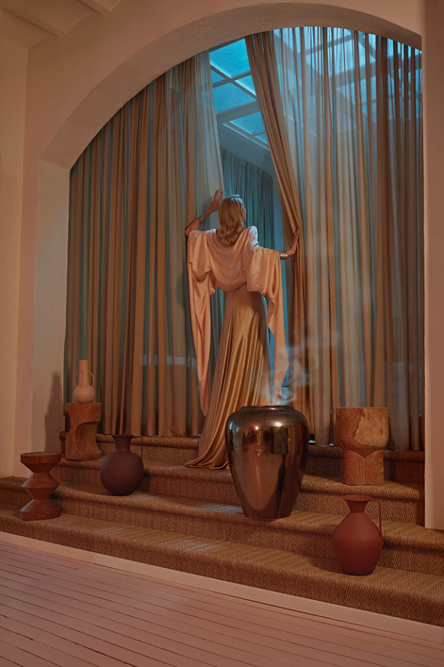 Taburet oval bej din textil 46x120 cm Noxx The Home Collection