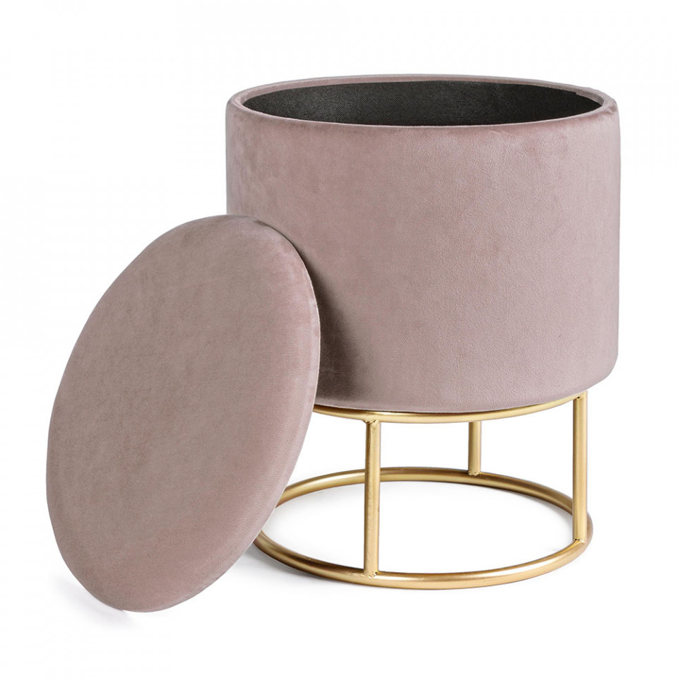 Taburet rotund roz/auriu din catifea 30 cm Polina Bizzotto