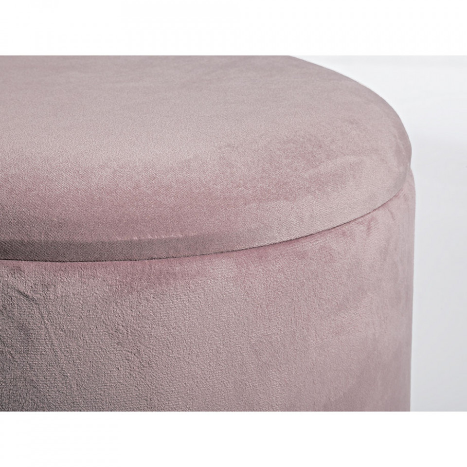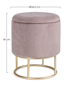 Taburetul rotund Polina, cu diametrul de 30 cm, combina o structura robusta din fier cu tapiterie din catifea roz, accentuata de detalii aurii elegante. Designul sau sofisticat si compact il face ideal pentru livinguri moderne, dormitoare sau zone lounge, adaugand un plus de stil si confort spatiului.