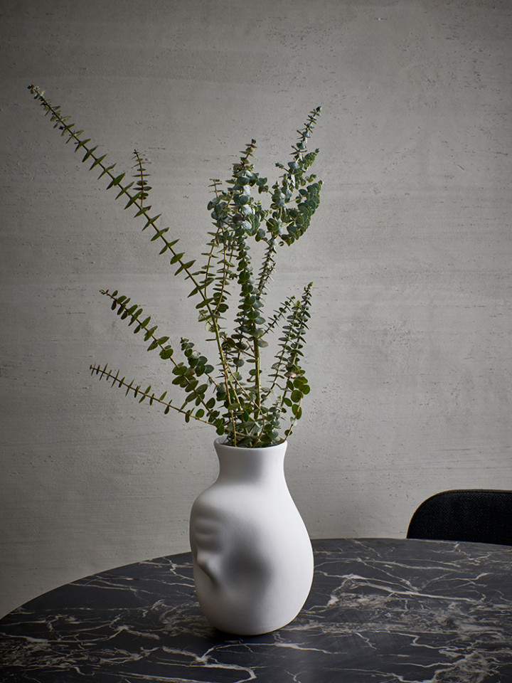 Vaza Upside-down de Koens & Middelkoop pentru POLSPOTTEN este realizata integral din portelan, cu un exterior mat nefinisat. Aceasta vaza excentrica reprezinta un accent decorativ deosebit si o piesa perfecta pentru petreceri.